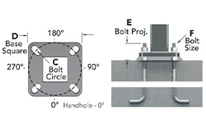 Brida base de placa de acero de 4 pernos de acero al carbono fabricado conforme a ASTM A36 con un límite elástico mínimo de 36.000 PSI, con cubierta base de 2 piezas y herrajes de fijación.